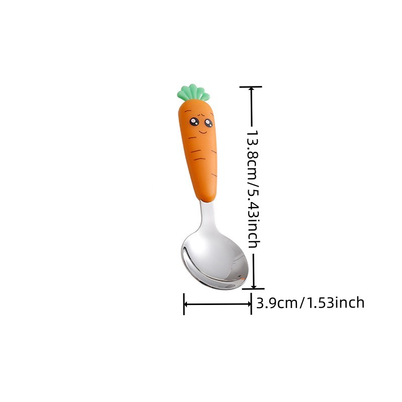 1pc/1set Portable Carrot Tableware, Creative Cartoon Children's Fork Spoon With Handle For Toddlers Kids