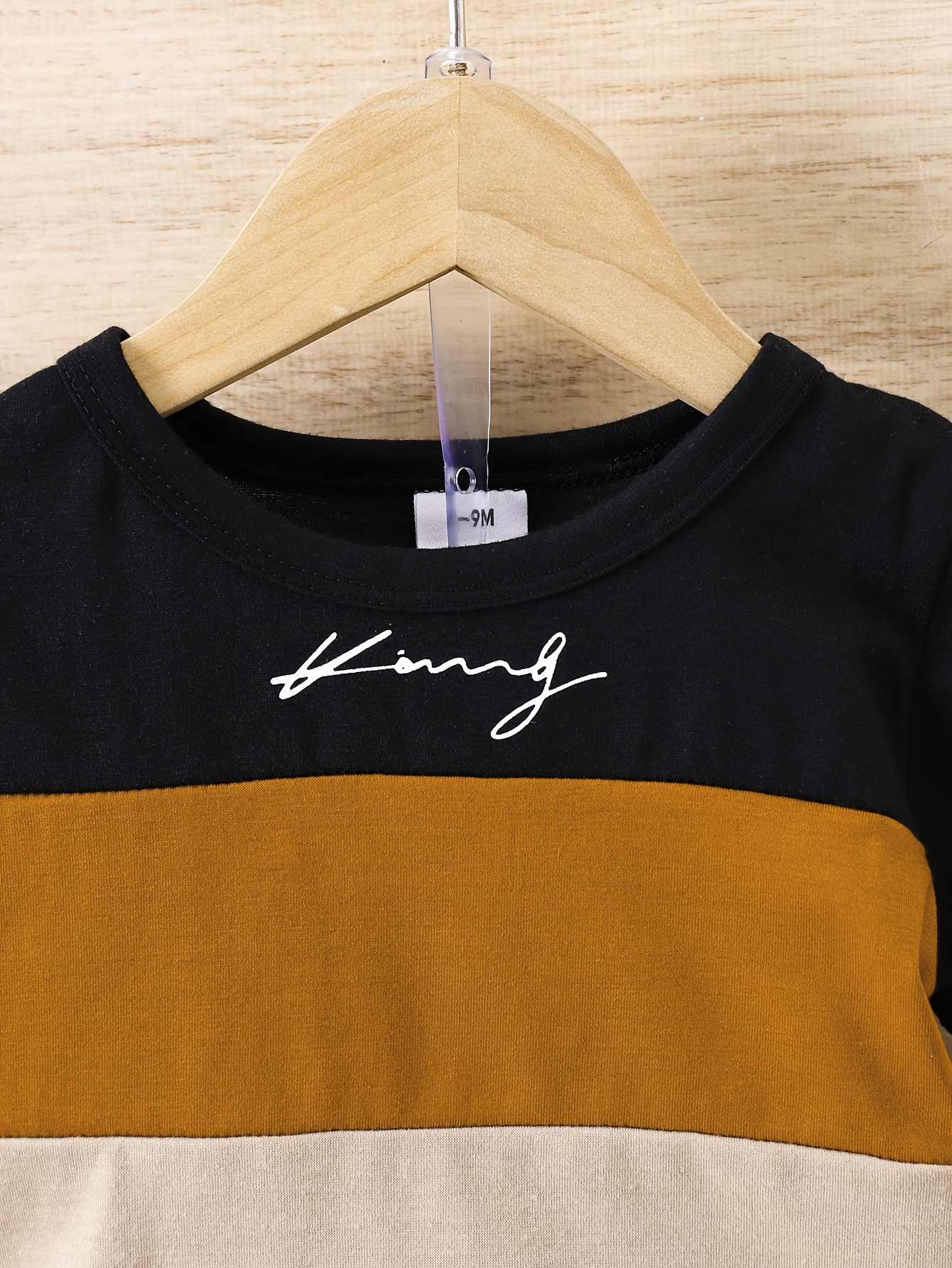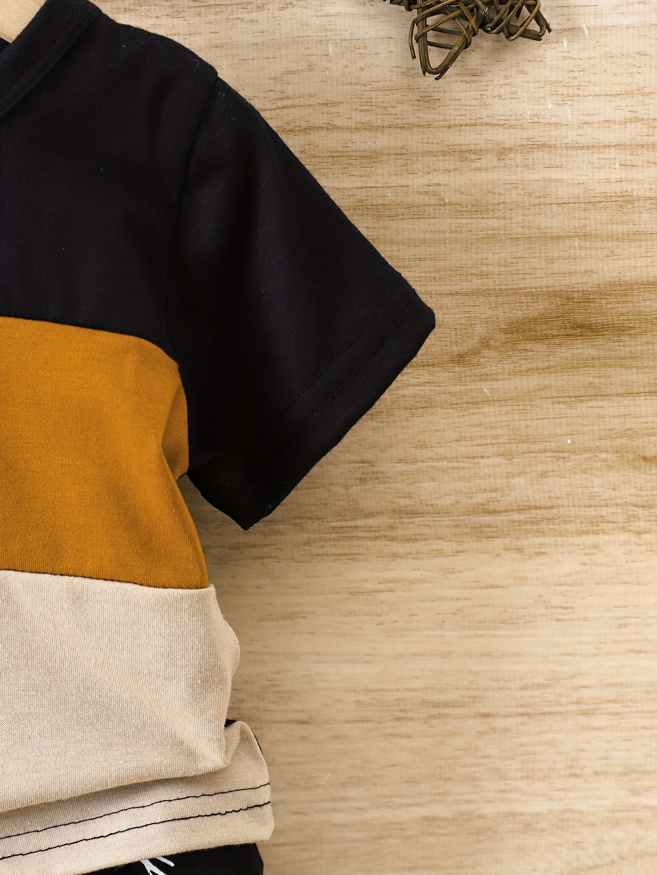 2pcs Infant & Toddler's Letter Print Casual Outfit, Color Clash T-shirt & Elastic Waist Shorts, Baby Boy's Clothes