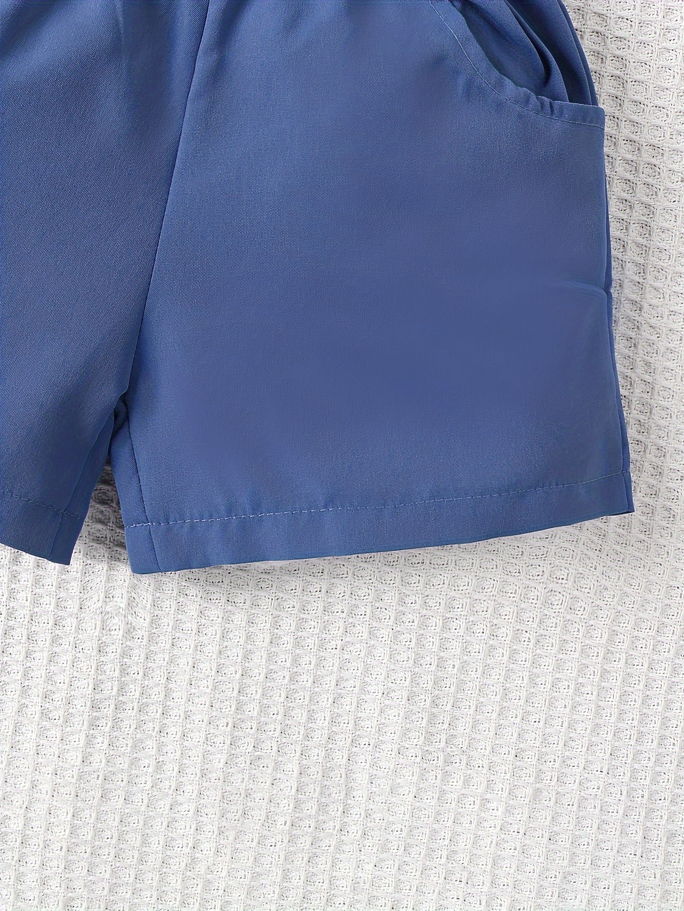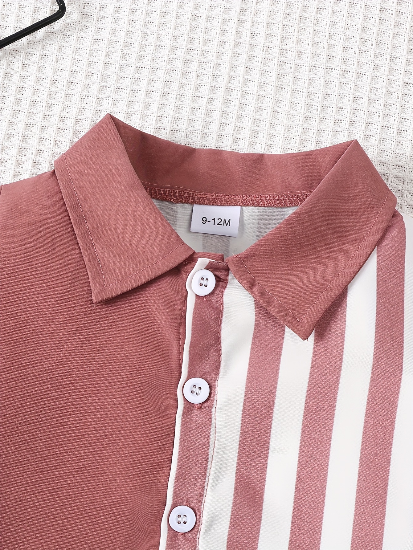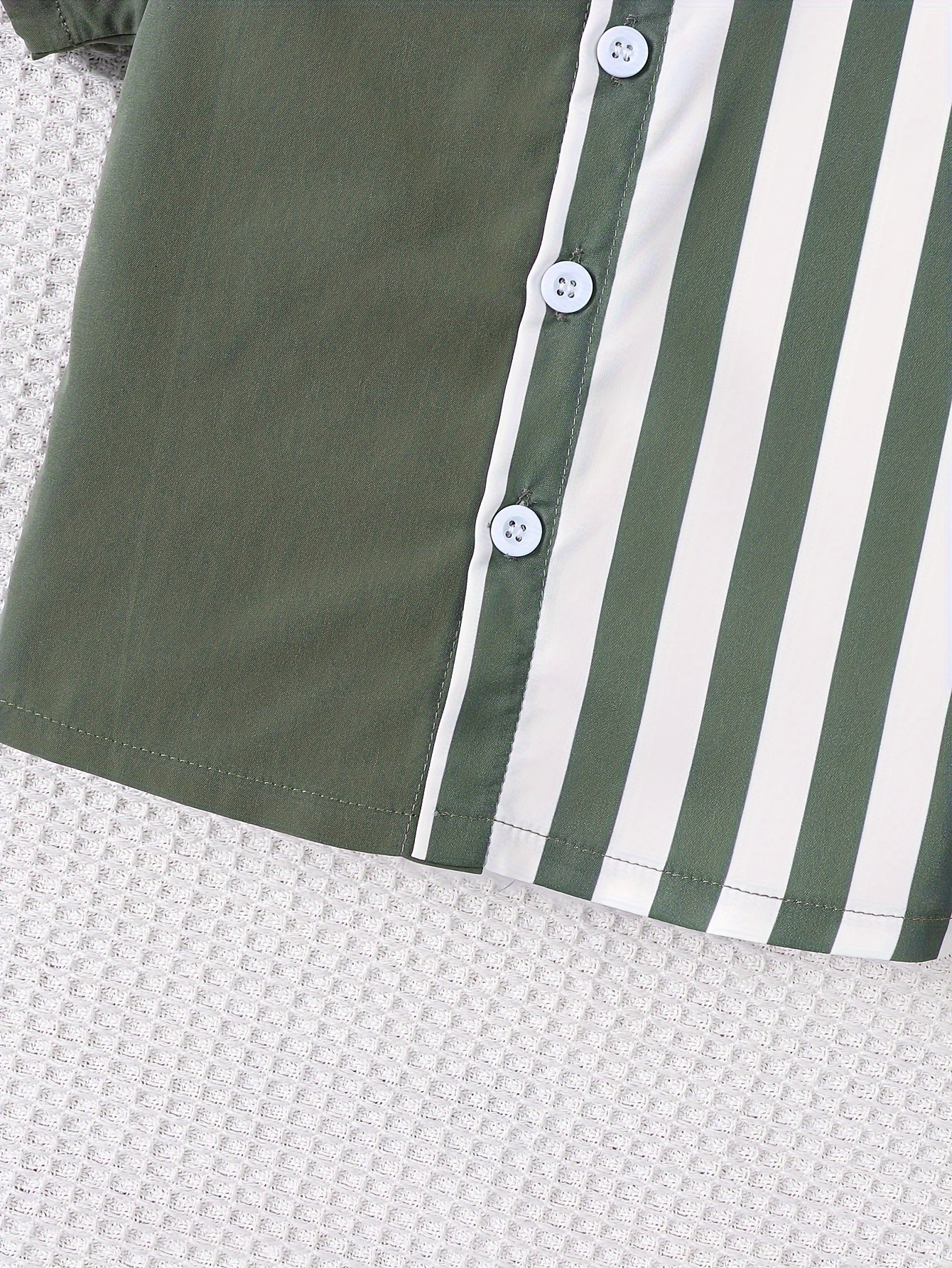 2pcs Infant & Toddler's Vertical Stripe Pattern Summer Outfit, Short Sleeve Shirt & Casual Shorts, Baby Boy's Clothes