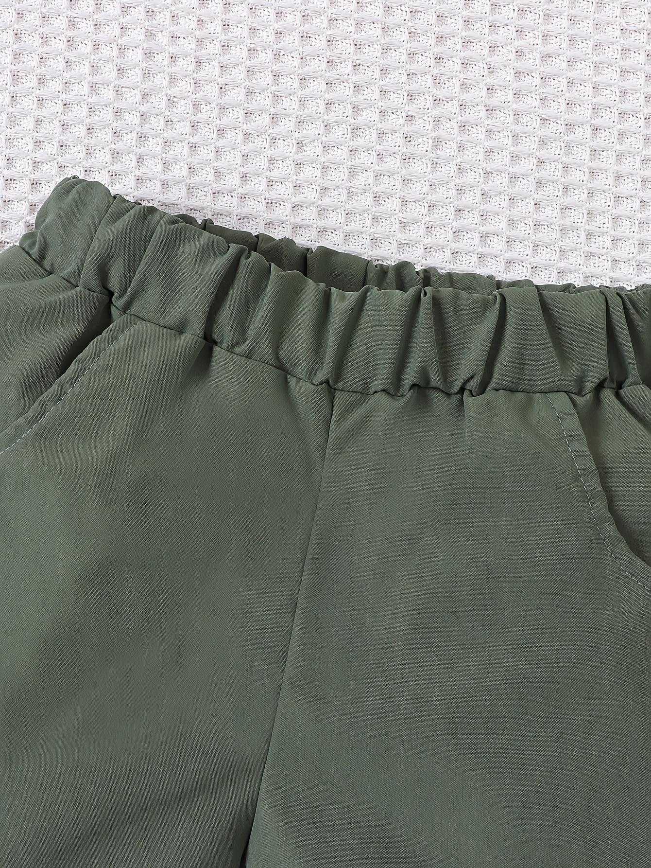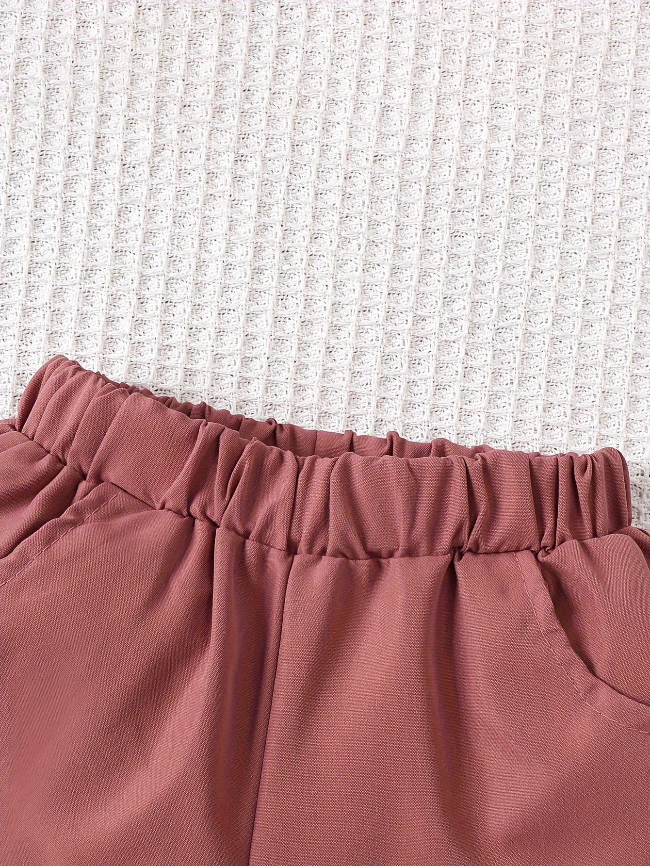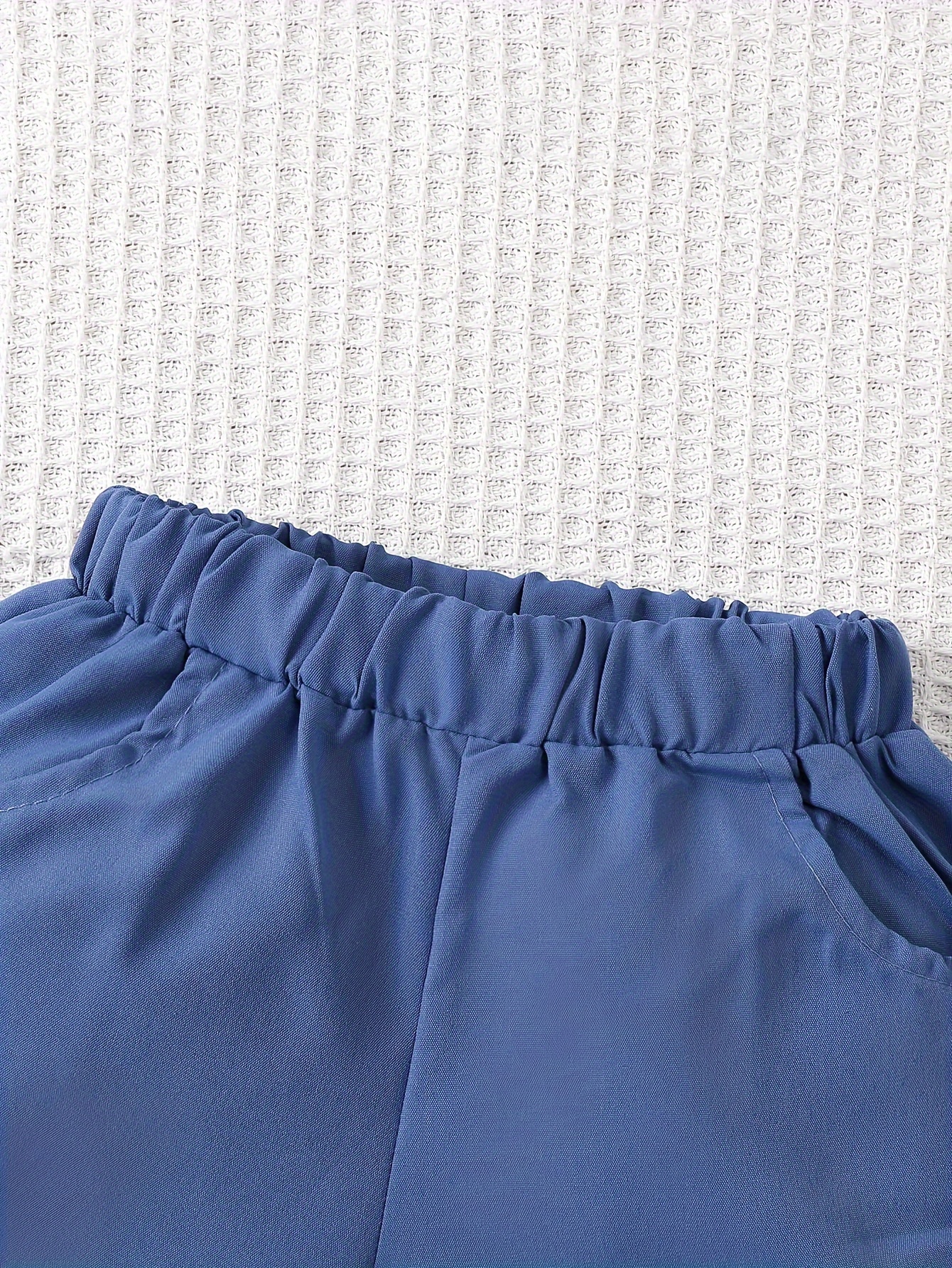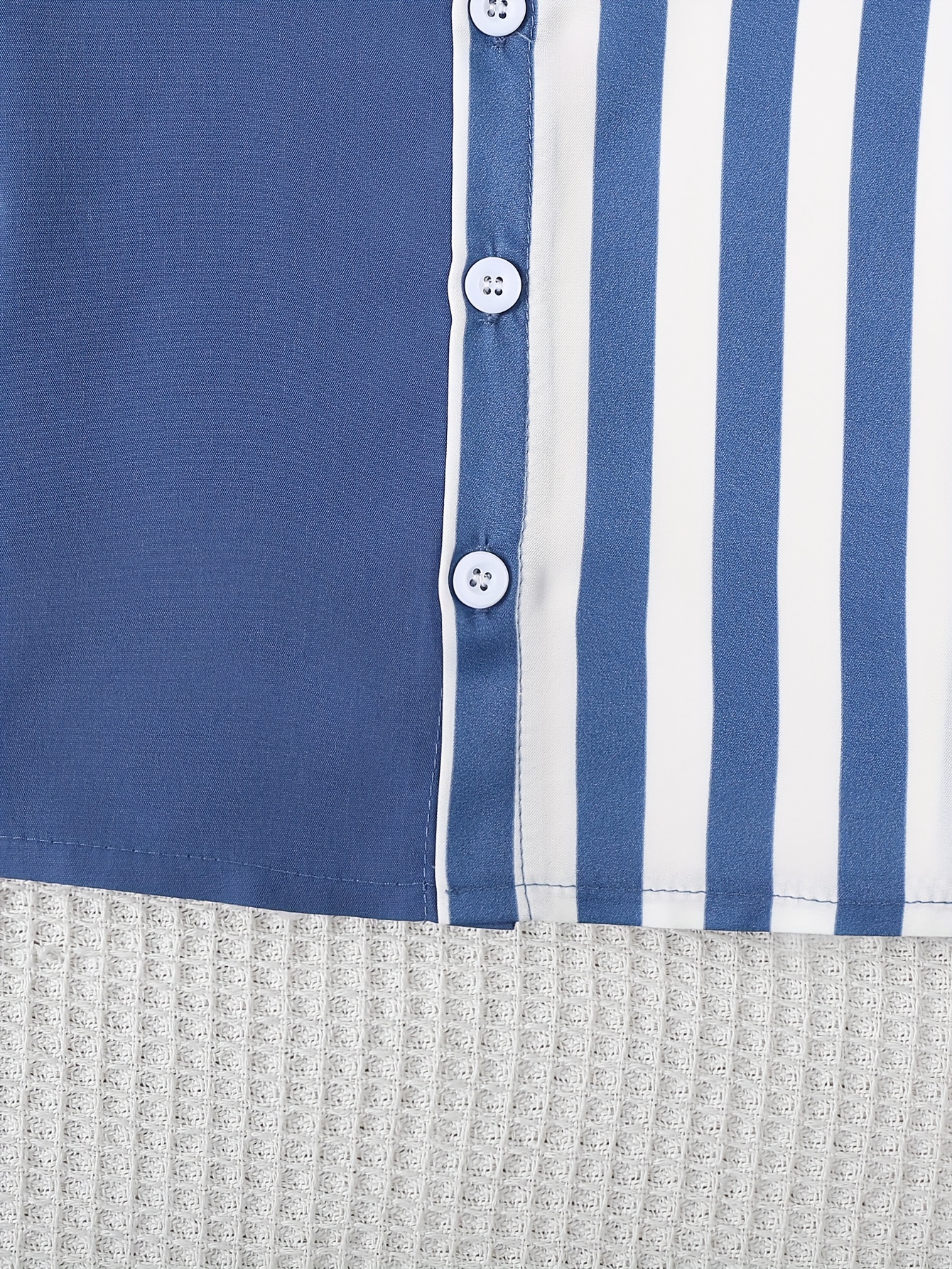 2pcs Infant & Toddler's Vertical Stripe Pattern Summer Outfit, Short Sleeve Shirt & Casual Shorts, Baby Boy's Clothes