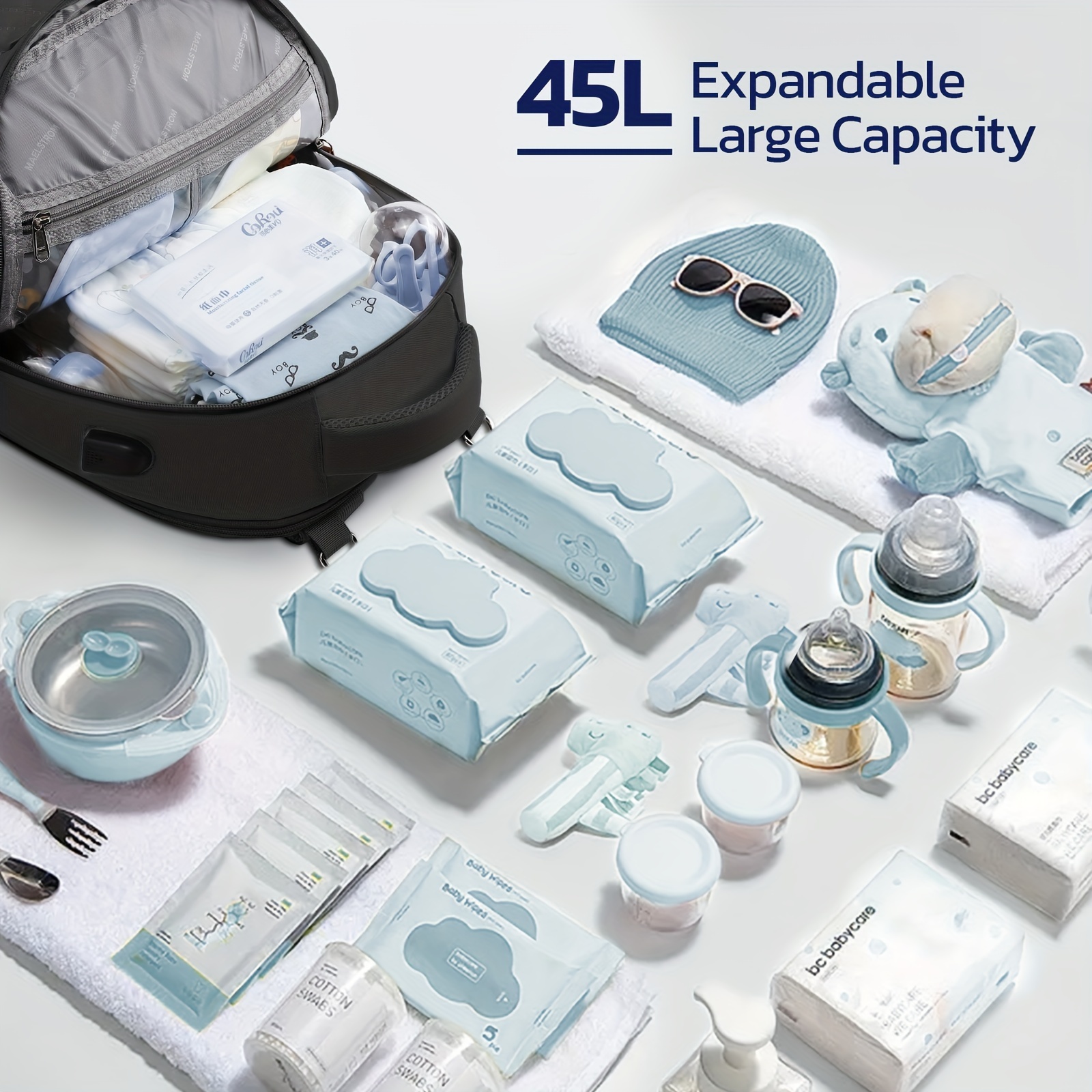7.66gal-11.89gal Expandable High Quality Diaper Backpack for 2 Kids/Twins - TSA-Approved Large Baby Bag with Removable Crossbody Bottle Bag, Multiple Compartments & Padded Straps, Stylish Black Polyester Gift for Moms & Dads,