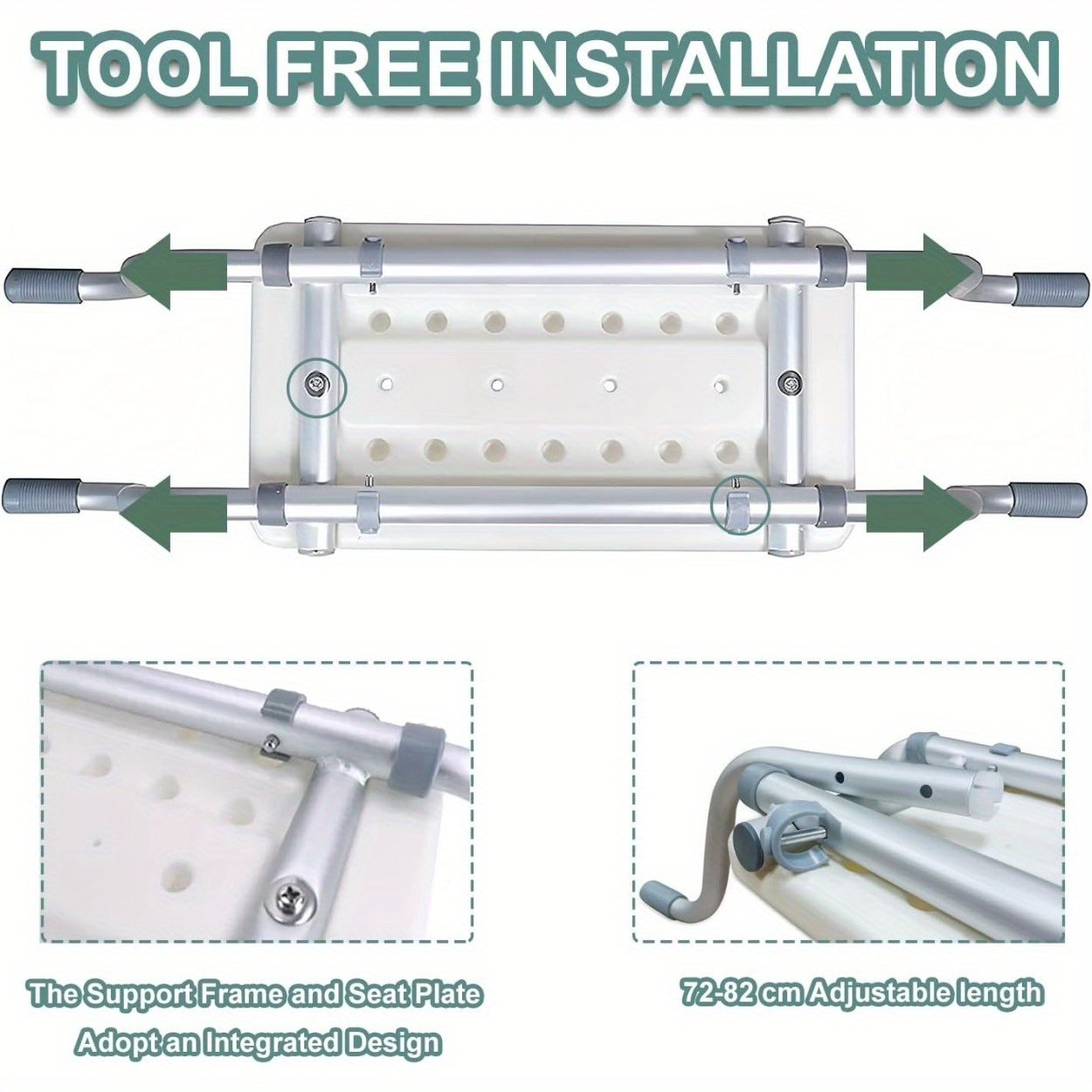 Adjustable White Aluminum Bath Seat - Lightweight, Retractable Bathtub Stool with Anti-Slip Surface for Elderly & Disabled - Durable PE Material, Easy Install