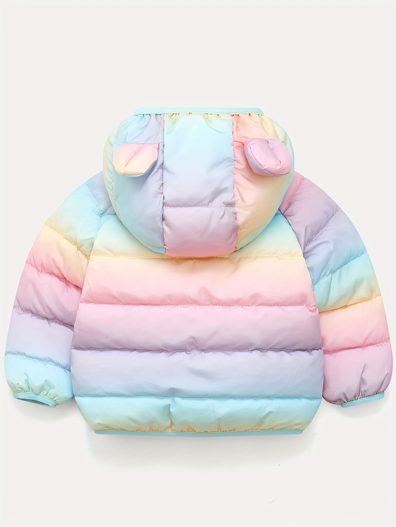 Baby Girls Rainbow Color Hooded Clothes, Infant Toddler Warm Colorful Cute Ear Hooded Jacket, Baby Winter Coat Cotton-padded Jacket