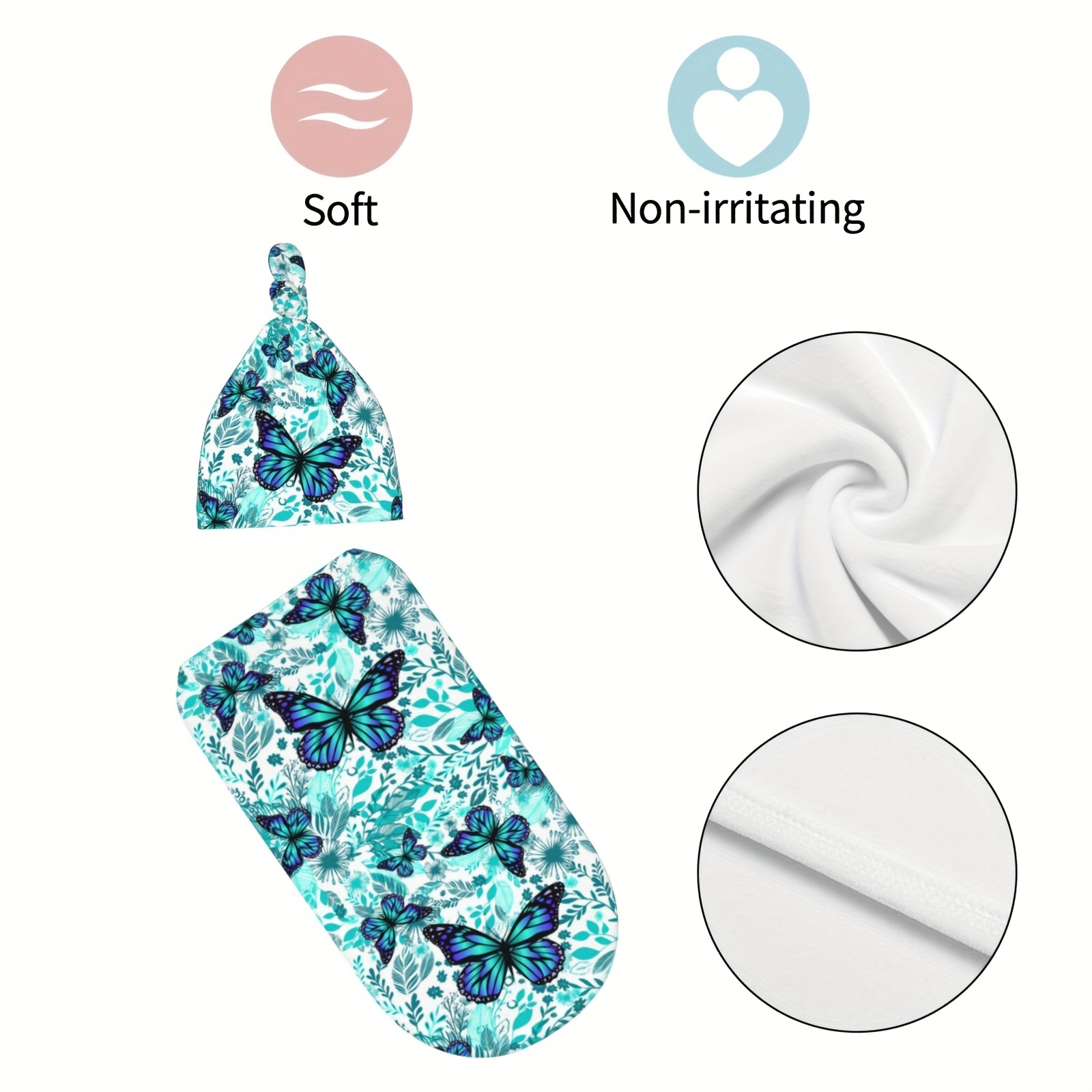 Butterfly Green Flower Newborn Swaddle Blanket Baby Swaddle Blankets Wrap Receiving Soft Stretchy Sack with Beanie Hat Sets Gift for Infant Boy Girl