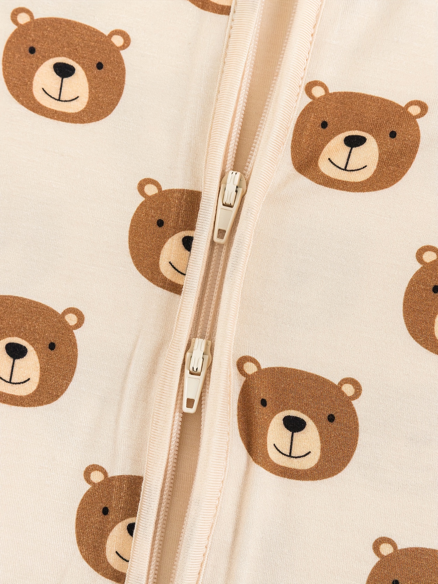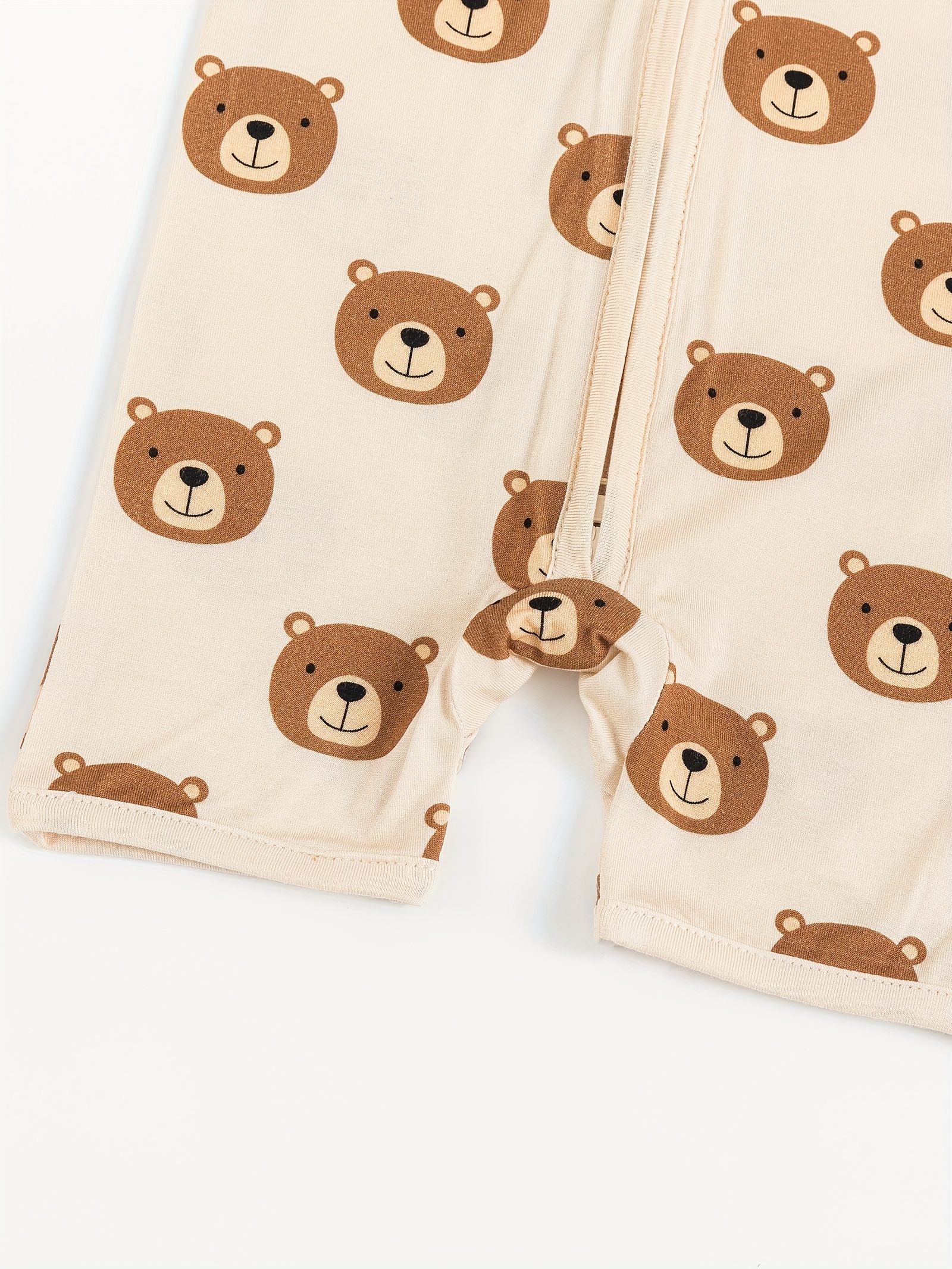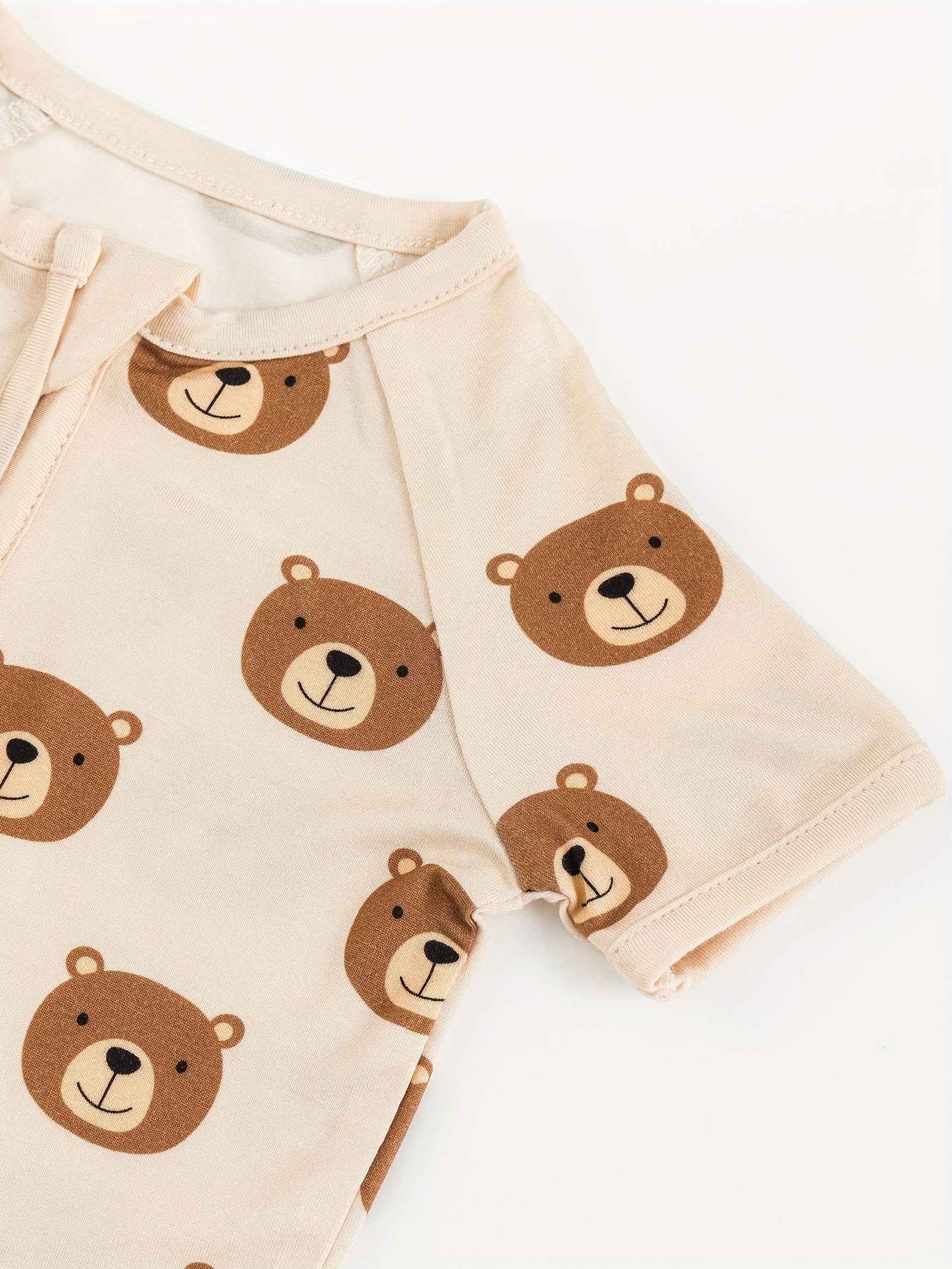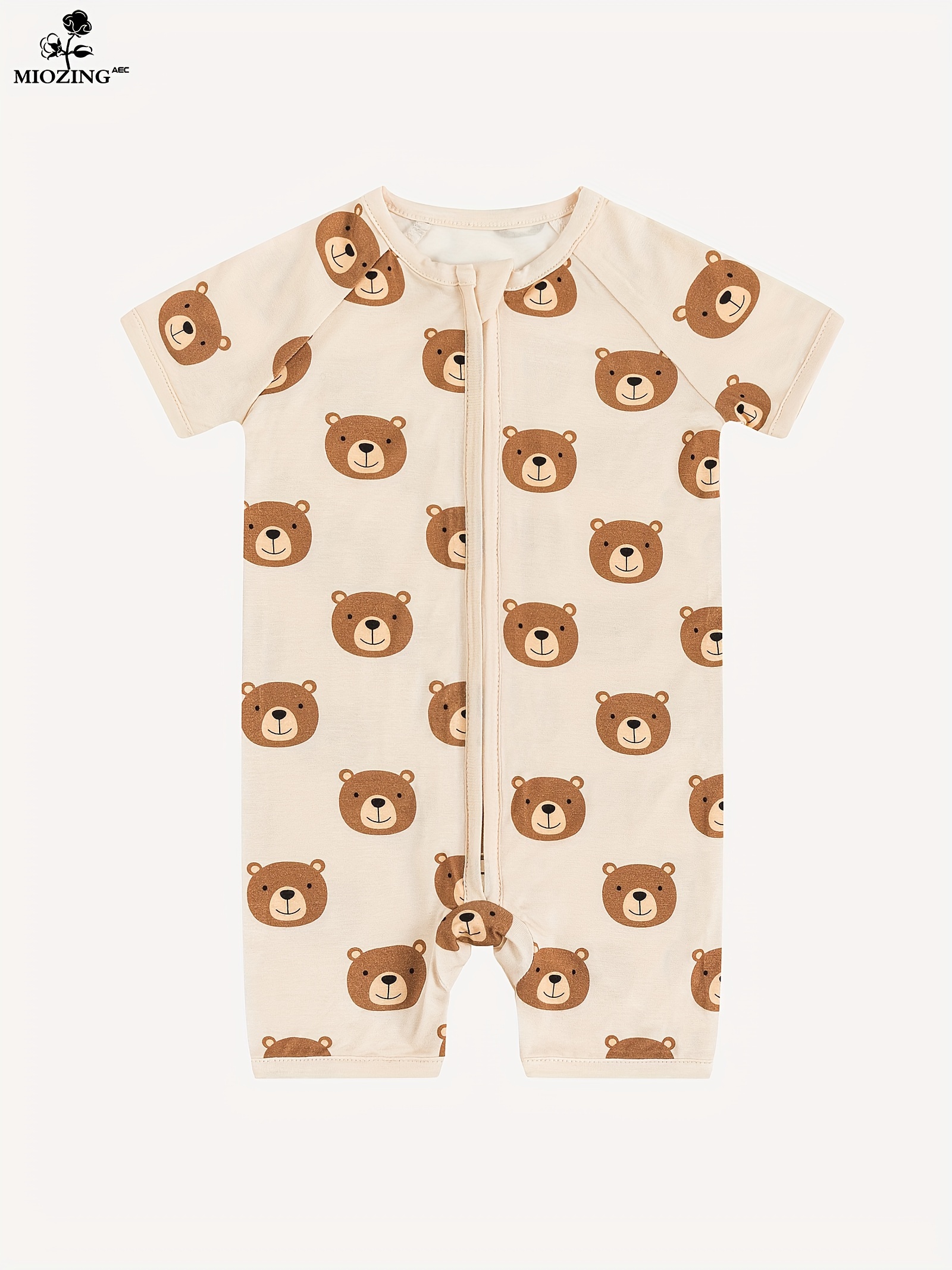Infant Unisex Bamboo Fiber Short Sleeve Zippered Romper With Cute Bear Print, Soft And Comfortable One-Piece Bodysuit For Babies