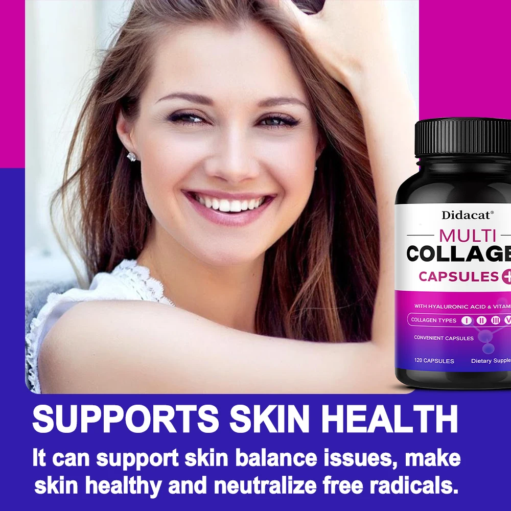 Multi-Collagen Supplement - with Vitamin C and Hyaluronic Acid Types I, II, III, V and X for Healthy Skin, Hair and Nails